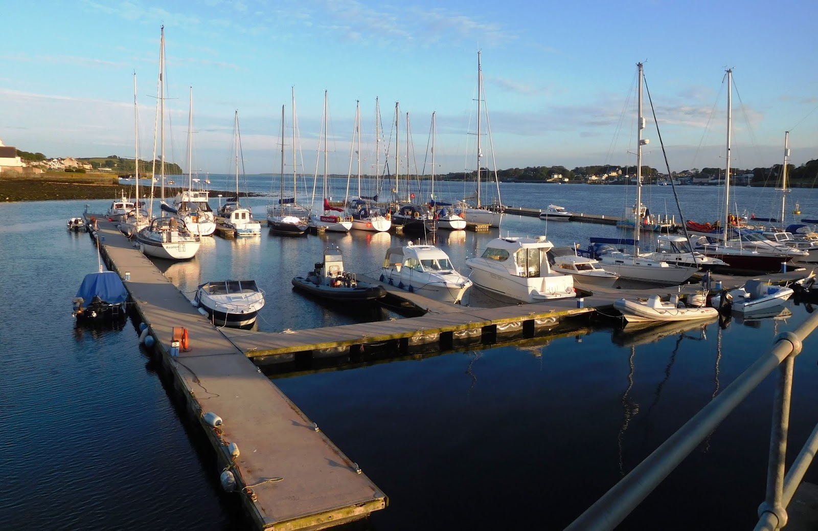 We had to make use of the strong tides between the mainland and the small islands (Copeland Islands) about 4 miles ahead of.  This called for an early start (07:10 actually), but we were also able to make use of the South going tidal stream down the coast.  The forecasted SW winds were way above the at 20 knot gusts, but we were able to make use of it until we had to alter course for the run in to Strangford Lough.  I had hoped that we arrived at the Lough on the flood and luckily we did (planning of course!).  The Almanac tells you about the current around the Copeland Islands and warns that 'it should not be attempted to go against it unless you can motor at 10 knots and have a good local knowledge'.  When I first read about the Strangford Lough Narrows it just said 'stream runs fast'.  I read later that at springs it could reach 7 knots - we actually had just over 6 knots, peeking at 11.4 knots SOG.  The difference in height between the up-steam and down-stream sides of the Seagen Isolated Danger mark just off Strangford was probably a metre and with the whirling water all around us it was quite impressive.  The quick right hand turn to Starboard to get just inside the Green Portaferry Marina entrance buoy was 'hairy' to say the least, but the current had calmed down once inside the pontoons.